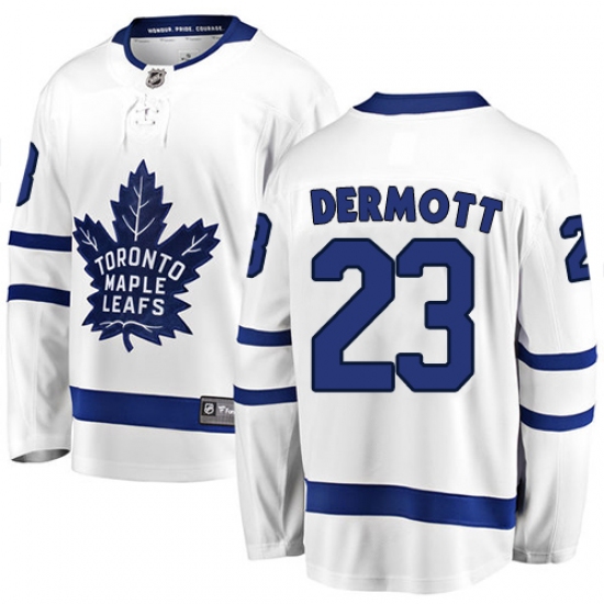 Youth Toronto Maple Leafs #23 Travis Dermott Authentic White Away Fanatics Branded Breakaway NHL Jersey