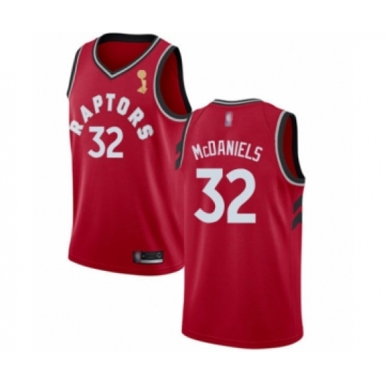 Women's Toronto Raptors #32 KJ McDaniels Swingman Red 2019 Basketball Finals Champions Jersey - Icon Edition