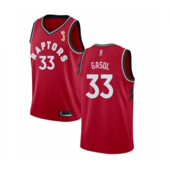 Women's Toronto Raptors #33 Marc Gasol Swingman Red 2019 Basketball Finals Champions Jersey - Icon Edition