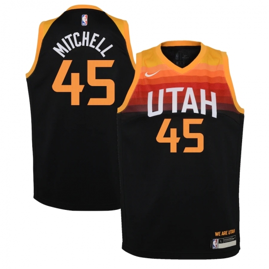 Youth Utah Jazz #45 Donovan Mitchell Nike Black 2020-21 Swingman Jersey