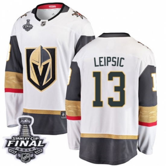 Men's Adidas Vegas Golden Knights #13 Brendan Leipsic Authentic White Away 2018 Stanley Cup Final NHL Jersey