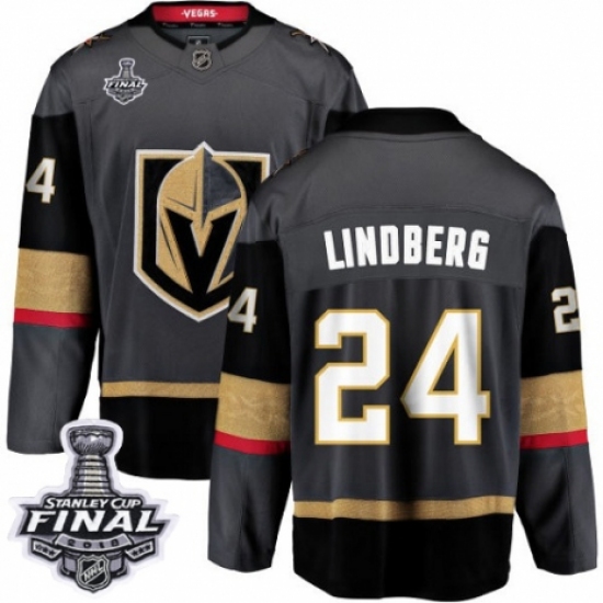 >Youth Vegas Golden Knights #24 Oscar Lindberg Authentic Black Home Fanatics Branded Breakaway 2018 Stanley Cup Final NHL Jersey