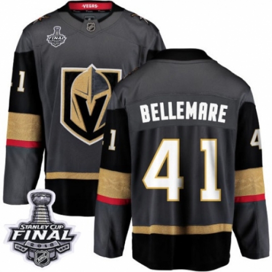 Youth Vegas Golden Knights #41 Pierre-Edouard Bellemare Authentic Black Home Fanatics Branded Breakaway 2018 Stanley Cup Final NHL Jersey