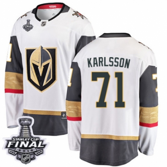 Youth Vegas Golden Knights #71 William Karlsson Authentic White Away Fanatics Branded Breakaway 2018 Stanley Cup Final NHL Jersey