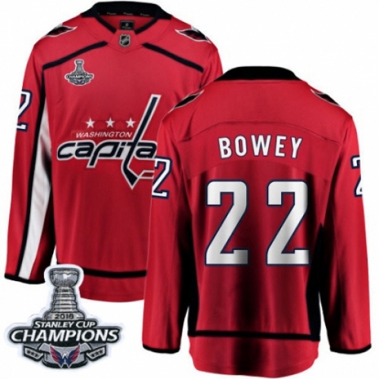 >Youth Washington Capitals #22 Madison Bowey Fanatics Branded Red Home Breakaway 2018 Stanley Cup Final Champions NHL Jersey