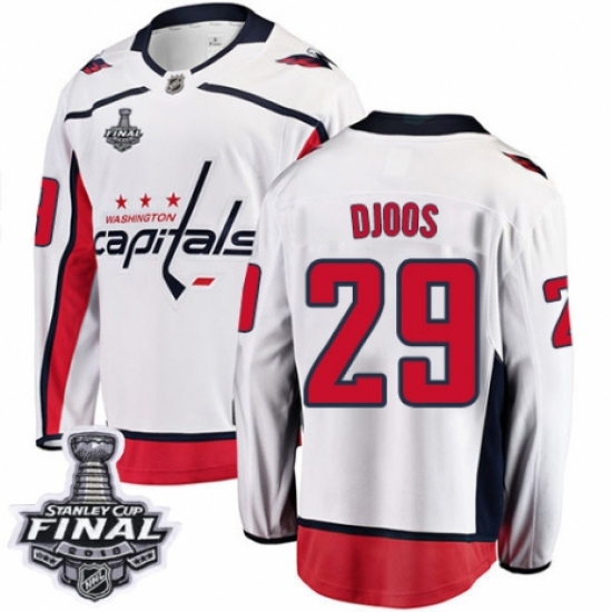 Men's Washington Capitals #29 Christian Djoos Fanatics Branded White Away Breakaway 2018 Stanley Cup Final NHL Jersey