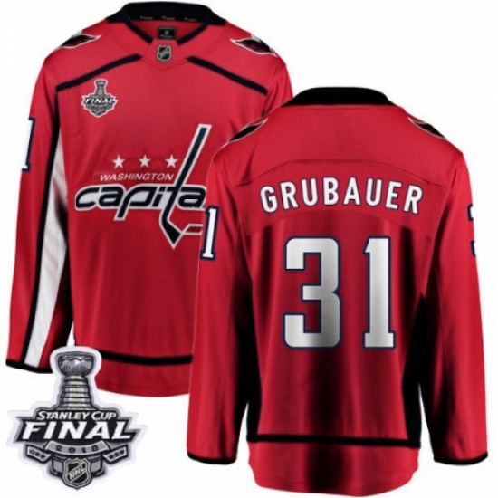Men's Washington Capitals #31 Philipp Grubauer Fanatics Branded Red Home Breakaway 2018 Stanley Cup Final Champions NHL Jersey