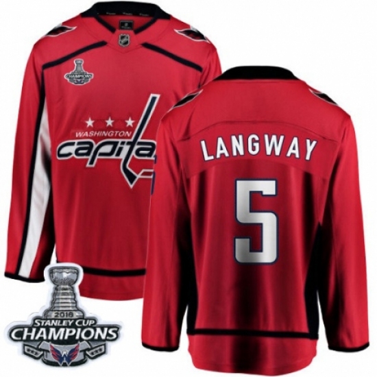 >Youth Washington Capitals #5 Rod Langway Fanatics Branded Red Home Breakaway 2018 Stanley Cup Final Champions NHL Jersey