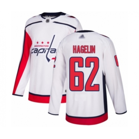 >Youth Washington Capitals #62 Carl Hagelin Authentic White Away Hockey Jersey