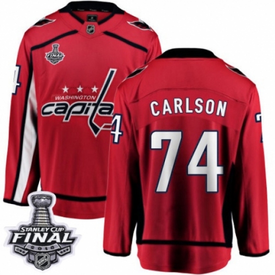 Youth Washington Capitals #74 John Carlson Fanatics Branded Red Home Breakaway 2018 Stanley Cup Final NHL Jersey