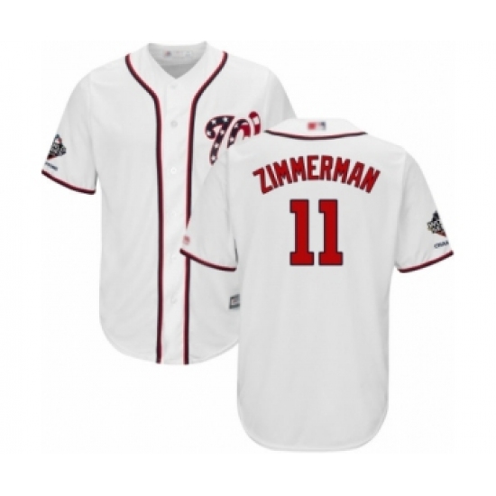 >Youth Washington Nationals #11 Ryan Zimmerman Authentic White Home Cool Base 2019 World Series Champions Baseball Jersey