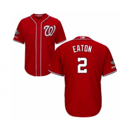 >Youth Washington Nationals #2 Adam Eaton Authentic Red Alternate 1 Cool Base 2019 World Series Champions Baseball Jersey