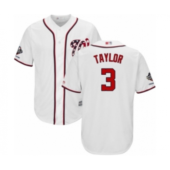 Youth Washington Nationals #3 Michael Taylor Authentic White Home Cool Base 2019 World Series Champions Baseball Jersey