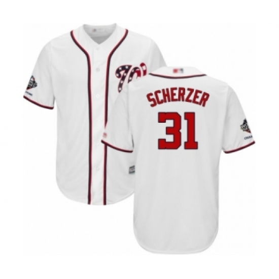 Youth Washington Nationals #31 Max Scherzer Authentic White Home Cool Base 2019 World Series Champions Baseball Jersey