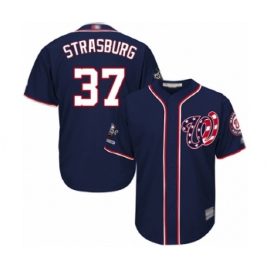 Men's Washington Nationals #37 Stephen Strasburg Navy Blue Alternate Flex Base Authentic Collection 2019 World Series Champions Baseball Jersey