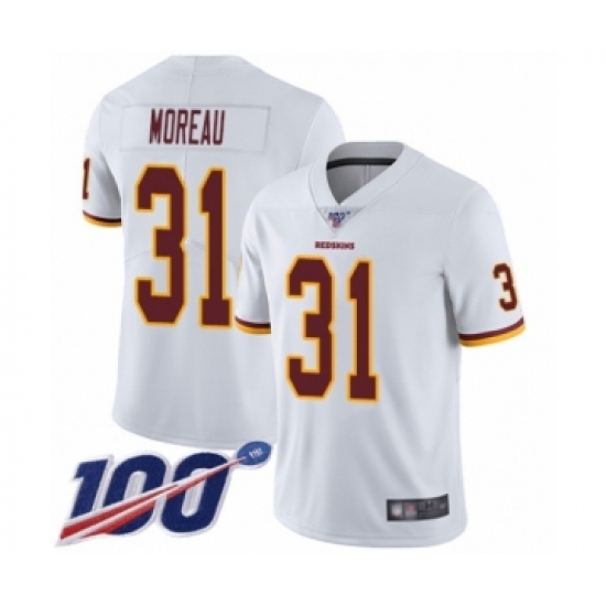 >Youth Washington Redskins #31 Fabian Moreau White Vapor Untouchable Limited Player 100th Season Football Jersey