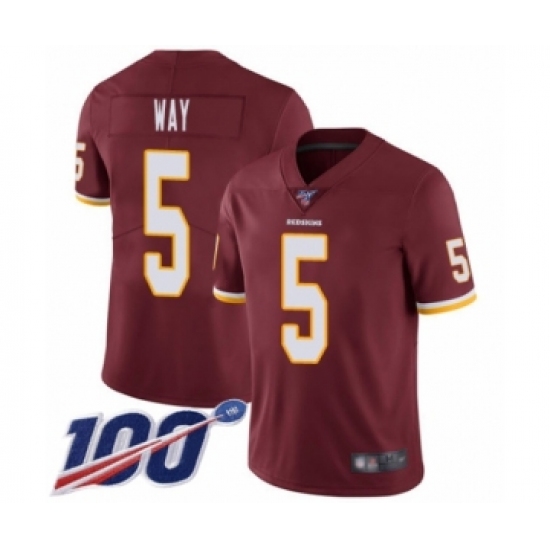 >Youth Washington Redskins #5 Tress Way Burgundy Red Team Color Vapor Untouchable Limited Player 100th Season Football Jersey