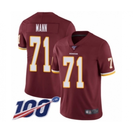 Youth Washington Redskins #71 Charles Mann Burgundy Red Team Color Vapor Untouchable Limited Player 100th Season Football Jersey