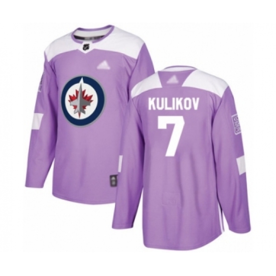>Youth Winnipeg Jets #7 Dmitry Kulikov Authentic Purple Fights Cancer Practice Hockey Jersey