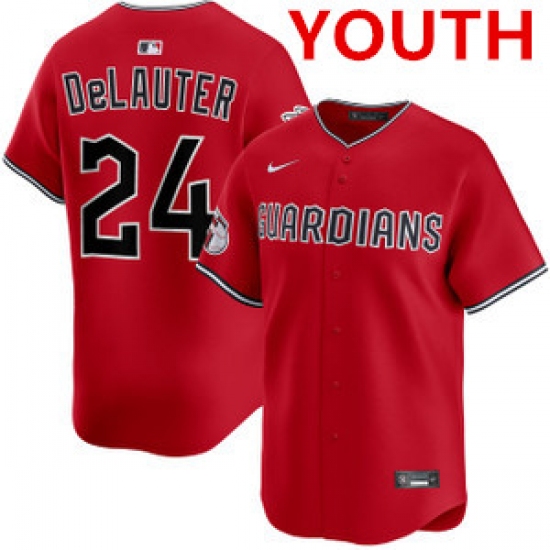 >Youth cleveland guardians #24 chase delauter red cool base stitched baseball jersey