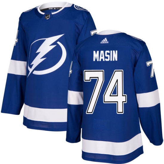 Home>NHL>Tampa Bay Lightning>Dominik Masin>Men's Adidas Tampa Bay Lightning #74 Dominik Masin Premier Royal Blue Home NHL Jersey