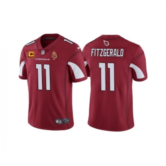 Men's Arizona Cardinals #11 Larry Fitzgerald Red With C Patch & Walter Payton Patch Limited Stitched Jersey