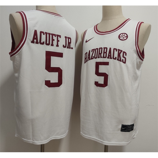 Men's Arkansas Razorbacks #5 Darius Acuff Jr. White Stitched Football Jersey