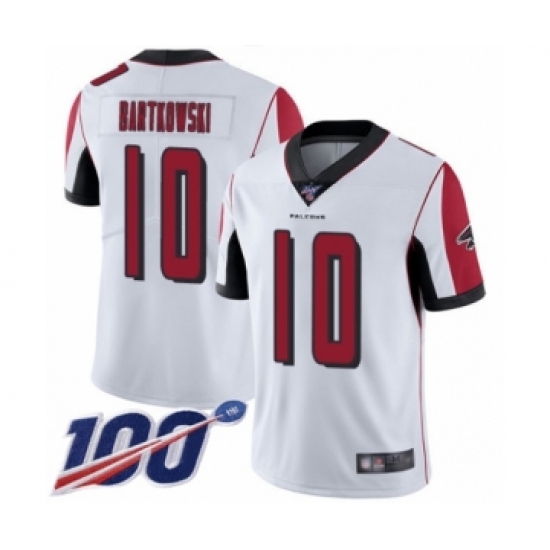 >Men's Atlanta Falcons #10 Steve Bartkowski White Vapor Untouchable Limited Player 100th Season Football Jersey