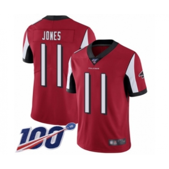 >Men's Atlanta Falcons #11 Julio Jones Red Team Color Vapor Untouchable Limited Player 100th Season Football Jersey