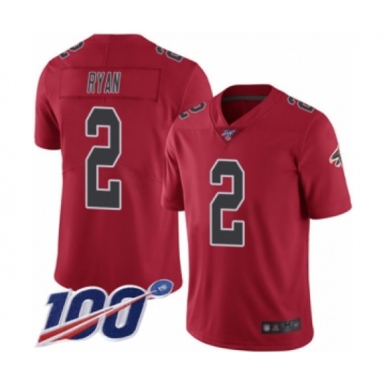 >Men's Atlanta Falcons #2 Matt Ryan Limited Red Rush Vapor Untouchable 100th Season Football Jersey