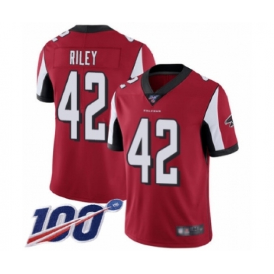 Men's Atlanta Falcons #42 Duke Riley Red Team Color Vapor Untouchable Limited Player 100th Season Football Jersey