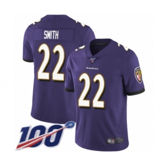 >Men's Baltimore Ravens #22 Jimmy Smith Purple Team Color Vapor Untouchable Limited Player 100th Season Football Jersey