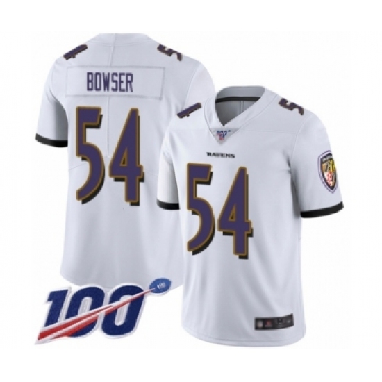 >Men's Baltimore Ravens #54 Tyus Bowser White Vapor Untouchable Limited Player 100th Season Football Jersey