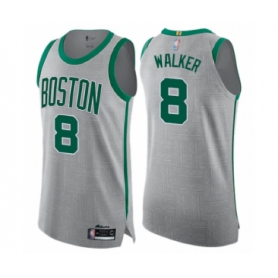 >Men's Boston Celtics #8 Kemba Walker Authentic Gray Basketball Jersey - City Edition