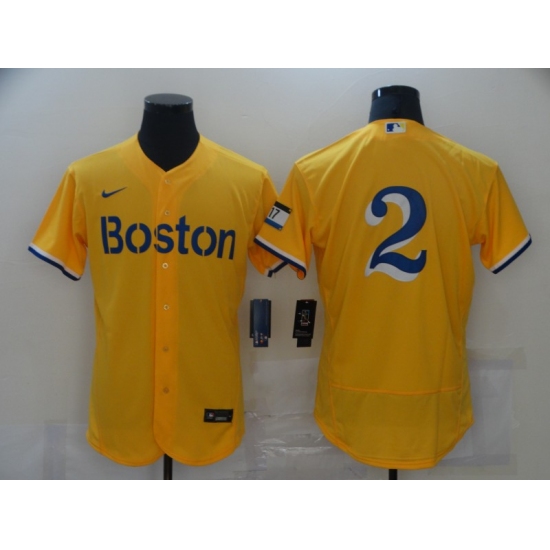 >Men's Boston Red Sox #2 Xander Bogaerts Nike Gold-Light Blue 2021 City Connect Jersey