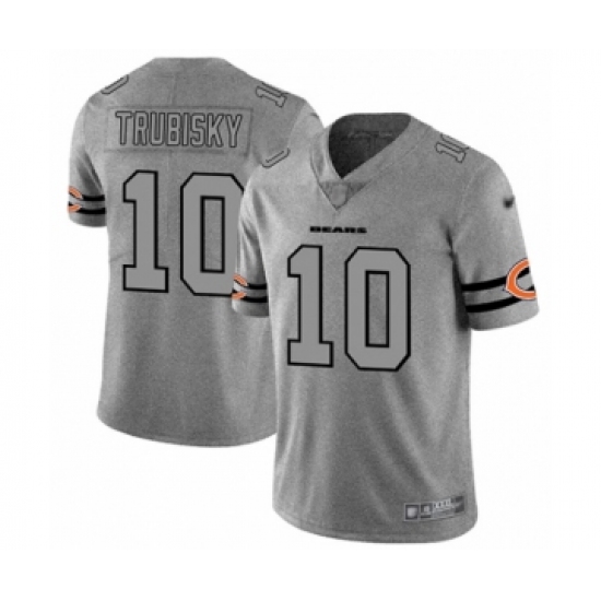 Men's Chicago Bears #10 Mitchell Trubisky Limited Gray Team Logo Gridiron Football Jersey