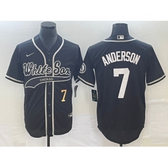 >Men's Chicago White Sox #7 Tim Anderson Number Black Cool Base Stitched Baseball Jersey