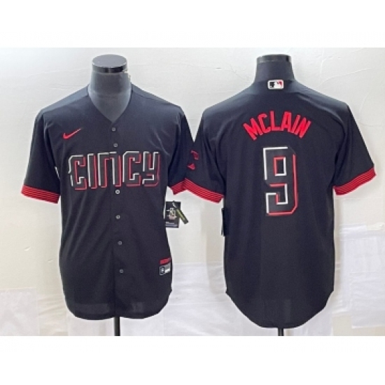 Men's Cincinnati Reds #9 Matt McLain Black 2023 City Connect Cool Base Stitched Jersey 1