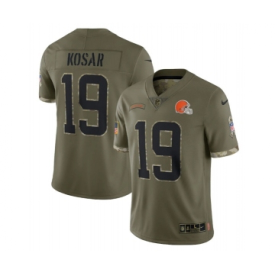 Men's Cleveland Browns #19 Bernie Kosar 2022 Olive Salute To Service Limited Stitched Jersey