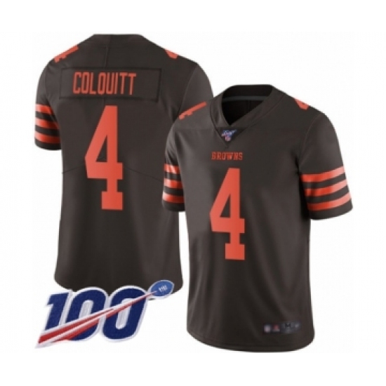 >Men's Cleveland Browns #4 Britton Colquitt Limited Brown Rush Vapor Untouchable 100th Season Football Jersey