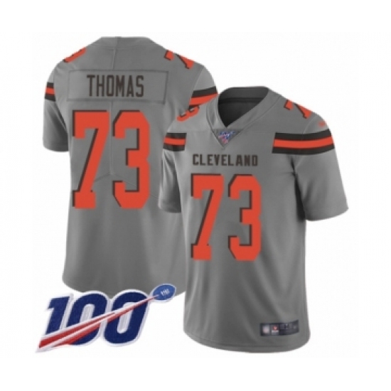 >Men's Cleveland Browns #73 Joe Thomas Limited Gray Inverted Legend 100th Season Football Jersey