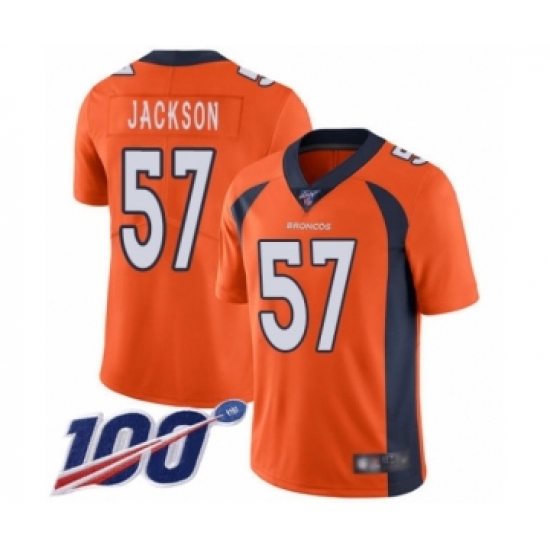 Men's Denver Broncos #57 Tom Jackson Orange Team Color Vapor Untouchable Limited Player 100th Season Football Jersey