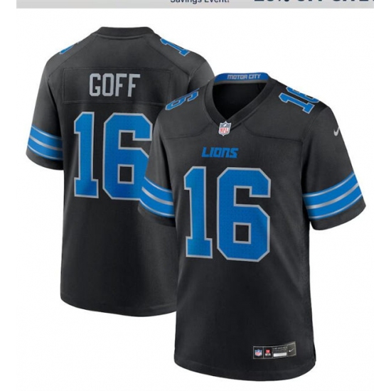 >Men's Detroit Lions #16 Jared Goff Nike 2024 Black 2nd Alternate Limited Jersey
