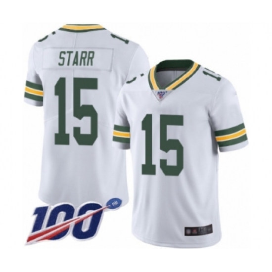 >Men's Green Bay Packers #15 Bart Starr White Vapor Untouchable Limited Player 100th Season Football Jersey