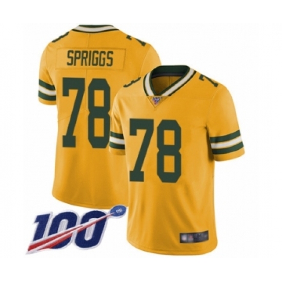 >Men's Green Bay Packers #78 Jason Spriggs Limited Gold Rush Vapor Untouchable 100th Season Football Jersey