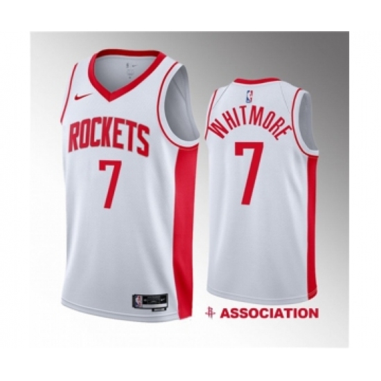 >Men's Houston Rockets #7 Cam Whitmore White 2023 Draft Association Edition Stitched Basketball Jersey