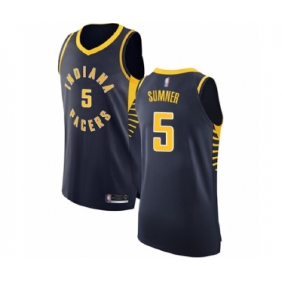 >Men's Indiana Pacers #5 Edmond Sumner Authentic Navy Blue Basketball Jersey - Icon Edition