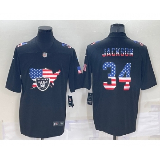 Men's Las Vegas Raiders #34 Bo Jackson 2022 USA Map Fashion Black Color Rush Stitched Nike Limited Jersey