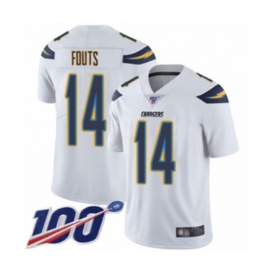 Men's Los Angeles Chargers #14 Dan Fouts White Vapor Untouchable Limited Player 100th Season Football Jersey