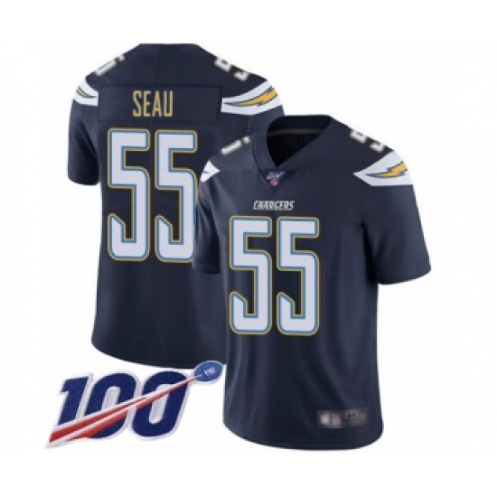 Men's Los Angeles Chargers #55 Junior Seau Navy Blue Team Color Vapor Untouchable Limited Player 100th Season Football Jersey